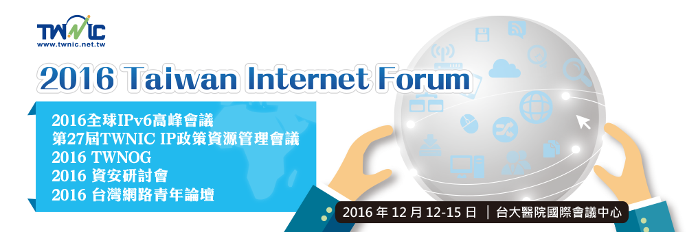 網路已經成為生活當中的一部份,網路也消弭了彼此溝通的界線,站在全球網路發展的重要轉變時刻,台灣如何與世界協同合作並掌握發展趨勢,「2016 Taiwan Internet Forum」敬邀我國網路產官學共同參與討論。